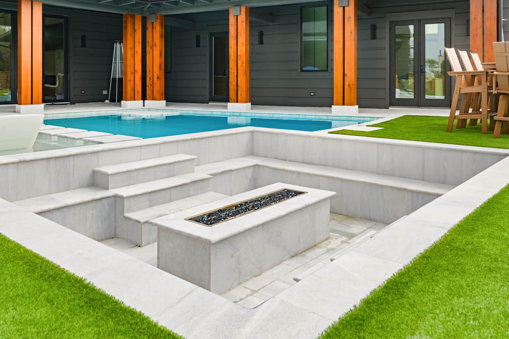 These upgrades transform a backyard pool into a space designed for both relaxation and entertaining.